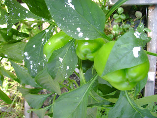 It's been a bit since I posted about my garden. Why? We are in our summer slump and nothing new is going on! I am still harvesting eggplants, peppers and a few beans now and then. Plants, like us, aren't overly fond of too much heat. I'm thankful that I get a break from the garden in the August heat. Even in the heat, the bugs don't give us a break. You will see DE (Diatomaceous earth) sprinkled on the plants. It is an all-natural bug killer that comes in a white powder form. We are also getting help from lots and lots of baby lizards. Natural bug killers and cute to boot!